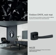 L’intensité du noir ONYX se conjugue aux courbes sensuelles et intemporelles de la poignée MUZE, pour offrir un rendu élégant et tendance, adapté à tous les intérieurs, du plus classique au plus avant-gardiste. Le toucher est lisse et chaud pour un confort d’utilisation au quotidien.
